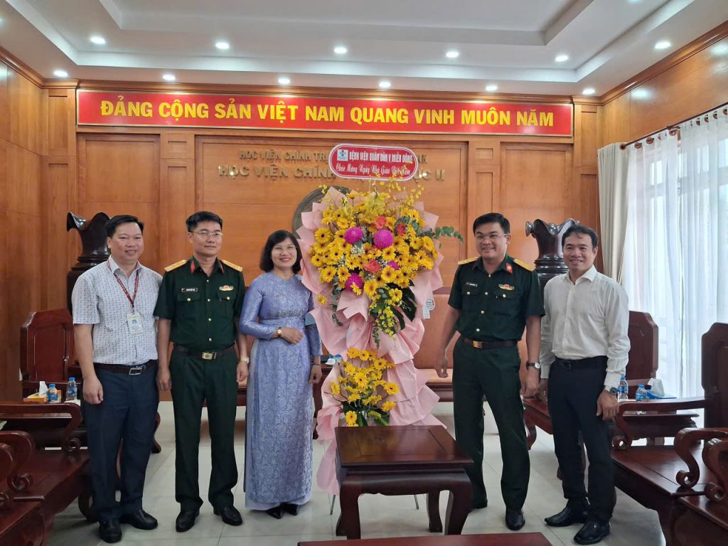 Lãnh đạo học viện, nhà trường trân trọng cảm ơn sự quan tâm của Đảng ủy, Ban Giám đốc Bệnh viện Quân Dân Y Miền Đông; đồng thời bày tỏ mong muốn thời gian tới, tiếp tục đẩy mạnh hợp tác, phối hợp trong các lĩnh vực đảm bảo y tế, nghiên cứu khoa học, trao đổi chuyên môn và tổ chức các hoạt động giáo dục truyền thống cho học viên, sinh viên trên địa bàn đứng chân.