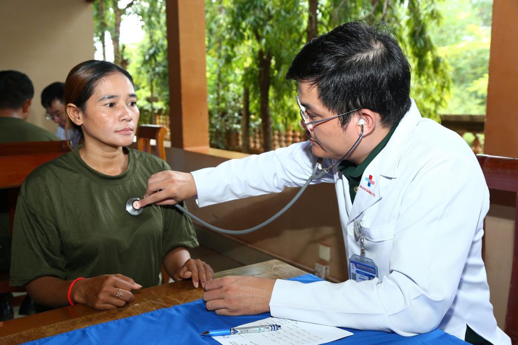 Trong một buổi sáng, các y, bác sĩ đã thăm khám, kê đơn phát thuốc, tư vấn sức khỏe cho 450 lượt quân nhân, thân nhân các gia đình quân nhân Bộ Tư lệnh Quân khu 4, Quân đội Hoàng gia Campuchia cũng như người dân nghèo có hoàn cảnh khó khăn trên địa bàn tỉnh Siem Reap. Qua thăm khám, các y, bác sĩ kịp thời phát hiện và tư vấn cách phòng và điều trị một số nhóm bệnh chủ yếu mà người dân ở đây thường gặp gồm: Tăng huyết áp, tiểu đường, dạ dày, tim mạch, xương khớp…