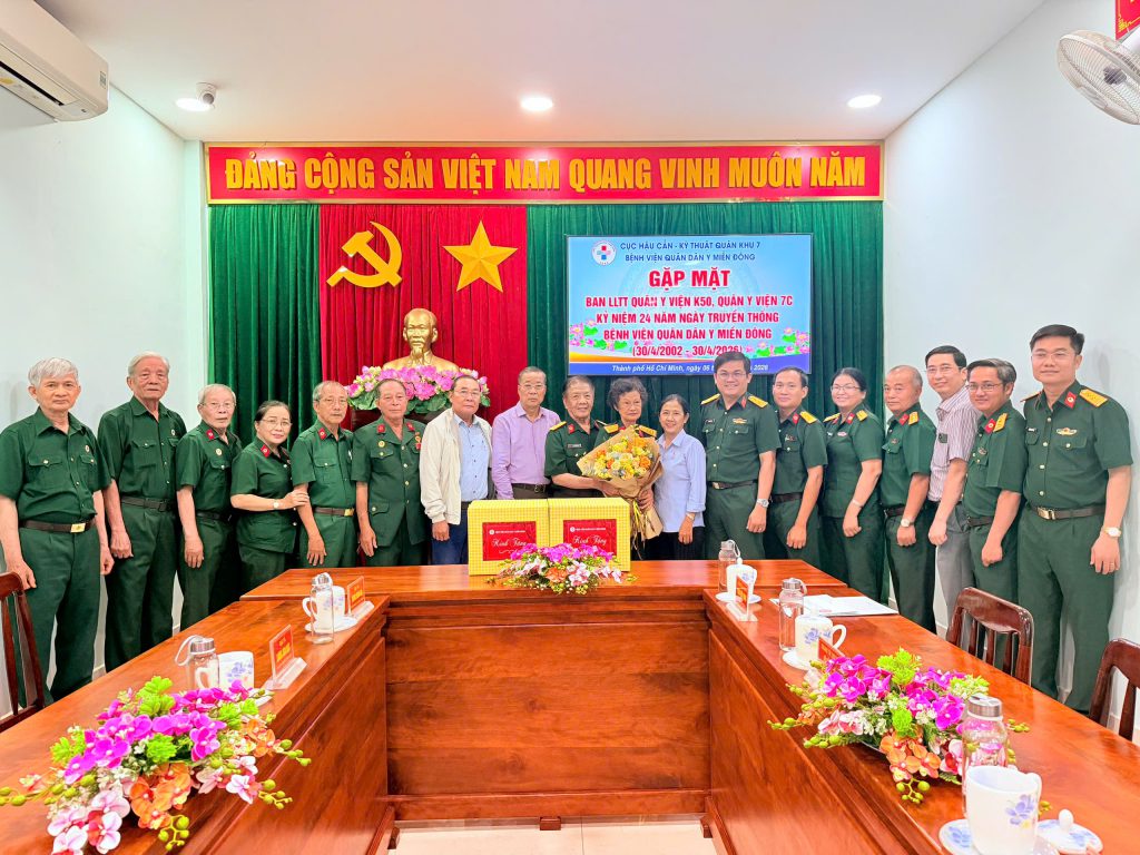 Nhân dịp kỷ niệm 24 năm Ngày truyền thống Bệnh viện Quân Dân Y Miền Đông (30/4/2002 – 30/4/2026), Bệnh viện đã tổ chức buổi gặp mặt thân mật và tặng quà tri ân các Ban Liên lạc truyền thống: Quân y Viện K50, Quân y Viện 7C và Quân y miền (B2) – Quân khu 7. Đây là hoạt động mang ý nghĩa sâu sắc, thể hiện đạo lý “uống nước nhớ nguồn”, tri ân các thế hệ cán bộ, chiến sĩ quân y đã có nhiều đóng góp to lớn cho quá trình xây dựng, phát triển bệnh viện nói riêng và sự nghiệp chăm sóc, bảo vệ sức khỏe bộ đội và Nhân dân nói chung.