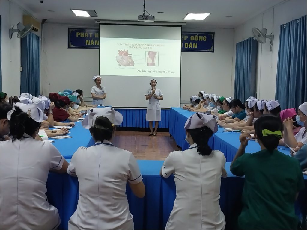 Trong Bệnh viện, việc phải ứng phó với trường hợp người bệnh bị nhồi máu cơ tim có nguy cơ xảy ra ở hầu hết các khoa, hiểu rõ tầm quan trọng đặc biệt ấy, Ban Điều dưỡng Bệnh viện Quân Dân Y Miền Đông đã tổ chức huấn luyện chăm sóc người bệnh nhồi máu cơ tim cho 100 học viên là các điều dưỡng, hộ sinh, kỹ thuật y các khoa lâm sàng nhằm cật nhật, bổ sung quy trình chăm sóc bệnh nhân nhồi máu cơ tim; Giúp điều dưỡng, hộ sinh nắm vững kiến thức, kỹ năng về thực hành chăm sóc bệnh nhân nhồi máu cơ tim.