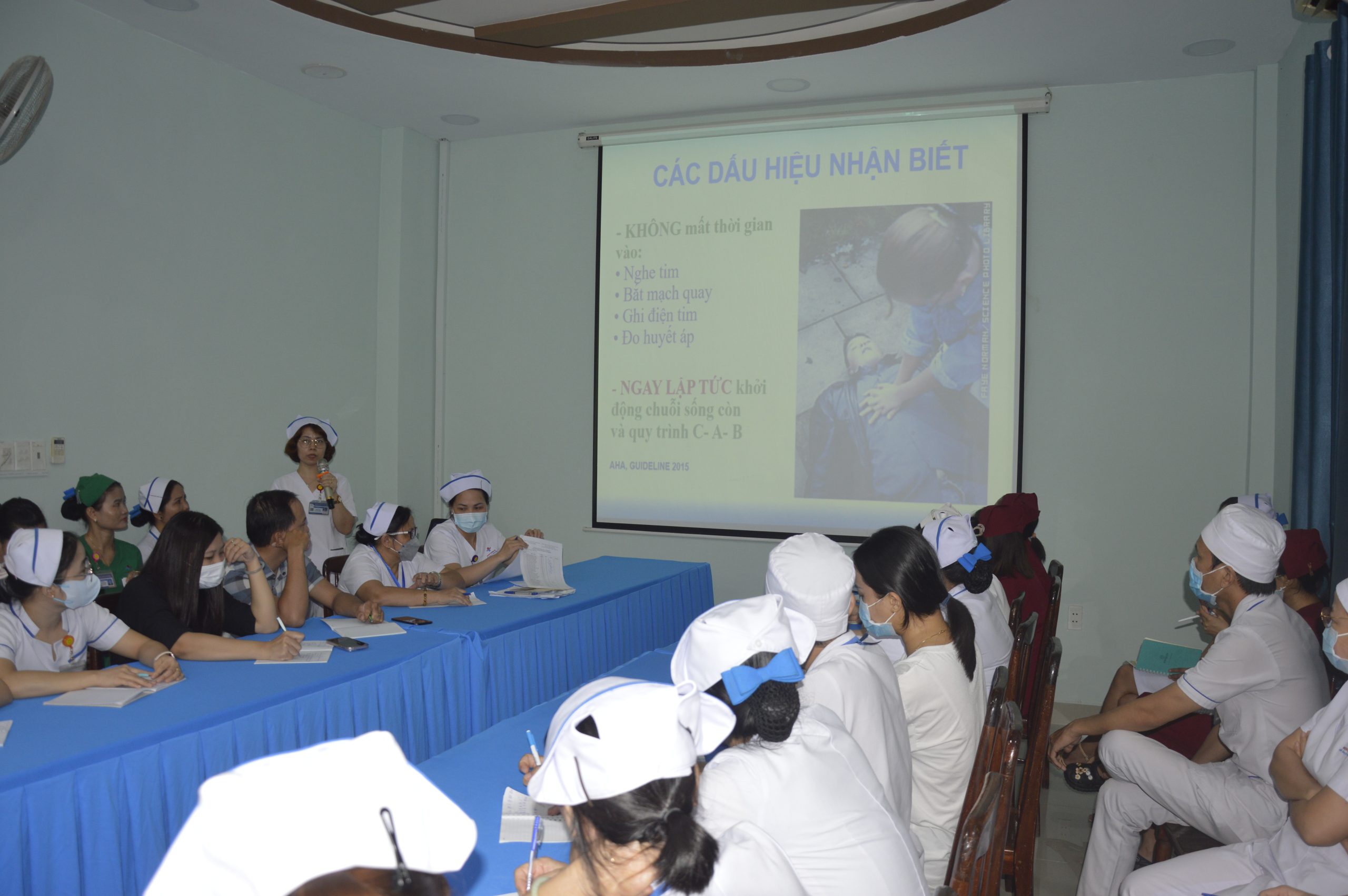 Tham gia giảng dạy, có ĐDCKI. Trần Thị Quỳnh Mai, Trưởng ban Điều dưỡng Bệnh viện và CNĐD. Nguyễn Thị Thu Thủy, Điều dưỡng trưởng Khoa Nội Tổng hợp. Giáo án được xây dựng đầy đủ, đáp ứng yêu cầu về chuyên môn và sát với thực tế của Bệnh viện, vận dụng giữa lý thuyết và thực hành chăm sóc người bệnh nhồi máu cơ tim; các báo cáo viên nhiệt tình, có trách nhiệm, lồng ghép nhiều phương pháp giảng dạy, truyền đạt thông tin súc tích, dễ hiểu giúp cho học viên dễ tiếp thu kiến thức và vận dụng vào thực hành chăm sóc.
