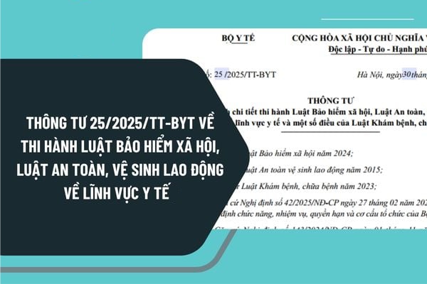 Ngày 30/6/2025, Bộ trưởng Bộ Y tế ban hành Thông tư 25/2025/TT-BYT quy định chi tiết thi hành Luật Bảo hiểm xã hội 2024, Luật An toàn vệ sinh lao động 2015 về lĩnh vực y tế và một số điều của Luật Khám bệnh, chữa bệnh 2023.