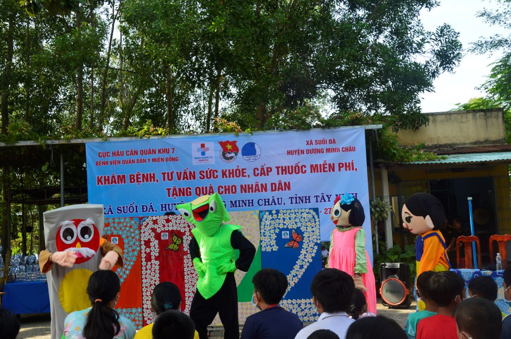 Bên cạnh các hoạt động phục vụ người bệnh tại chỗ, Bệnh viện còn có cách làm mới, sáng tạo trong “công tác khám chữa bệnh giúp dân” vùng sâu vùng xa, vùng căn cứ cách mạng, biên giới,… Ngoài hoạt động khám bệnh, cấp thuốc và tặng quà cho người dân, từ năm 2017 đến nay, mỗi khi đoàn công tác của Bệnh viện Quân dân y miền Đông thực hiện nhiệm vụ khám chữa bệnh giúp dân đã tổ chức thêm những hoạt động khác như: cắt tóc miễn phí cho trẻ em và người dân trong khu vực; truyền thông giáo dục sức khoẻ cộng đồng thông qua biểu diễn “Múa rối” và hướng dẫn những kỹ năng sống cho học sinh; tổ chức trò chơi vận động, tặng truyện tranh, sách báo thiếu nhi,… Chỉ tính riêng năm 2023, Bệnh viện đã khám bệnh, cấp thuốc, tặng quà và hoạt động thiện nguyện giúp cho 1.650 lượt người dân, với kinh phí 1,23 tỷ đồng. Tất cả vẽ nên bức tranh thấm đẫm nghĩa tình Quân – Dân, cá – nước, tô đẹp thêm hình ảnh “Anh Bộ đội Cụ Hồ”, người chiến sĩ Quân y trong lòng người dân.