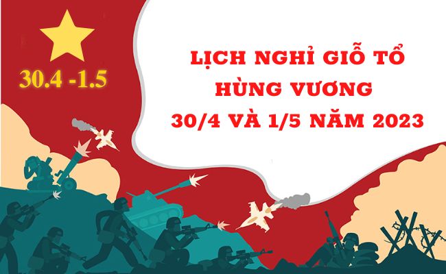 Thông báo lịch nghỉ lễ Giỗ Tổ Hùng Vương (mùng 10/3 Âm lịch), Ngày Giải phóng miền Nam, thống nhất đất nước 30/4 và Ngày Quốc tế lao động 01/5/2023.