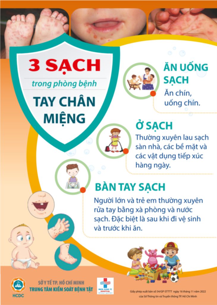 Trong 2 tuần vừa qua, số ca mắc bệnh tay chân miệng tại Thành phố đang có khuynh hướng gia tăng. Kết quả giám sát vi sinh về tác nhân gây bệnh cũng đã ghi nhận trường hợp bệnh nhi nặng từ tỉnh khác đến điều trị dương tính với Enterovirus 71. Đây là tác nhân có nguy cơ gây bệnh nặng. Chúng ta cần tăng cường phòng bệnh cho trẻ theo nguyên tắc 3 sạch. Đặc biệt, nếu phát hiện trẻ có dấu hiệu nghi ngờ mắc bệnh cần đưa trẻ đi khám để được tư vấn, hướng dẫn điều trị phù hợp.