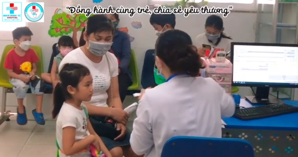 Bệnh nhi và phụ huynh trong phòng tiêm của khoa Nội nhi.
