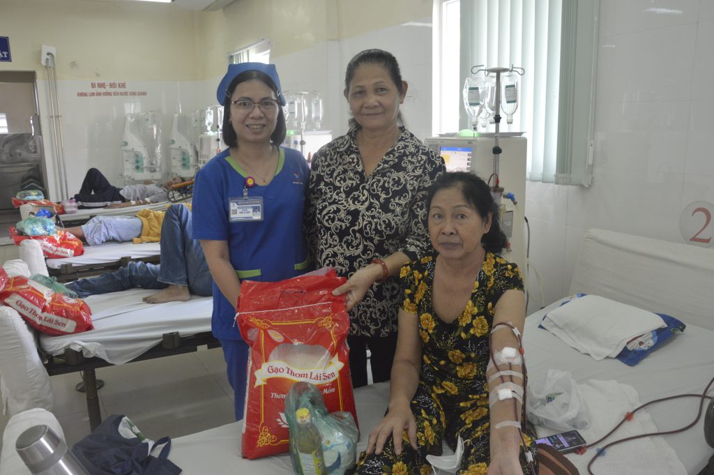 Với mong muốn động viên, giúp đỡ những người kém may mắn mang trong mình căn bệnh hiểm nghèo, 40 người bệnh suy thận mạn có hoàn cảnh khó khăn đang nằm điều trị tại khoa Thận – Lọc máu Bệnh viện Quân dân y miền Đông đã được nhận mỗi người 1 phần quà bao gồm 10kg gạo, 01 chai dầu ăn, 01 chai nước tương, 1kg đường.