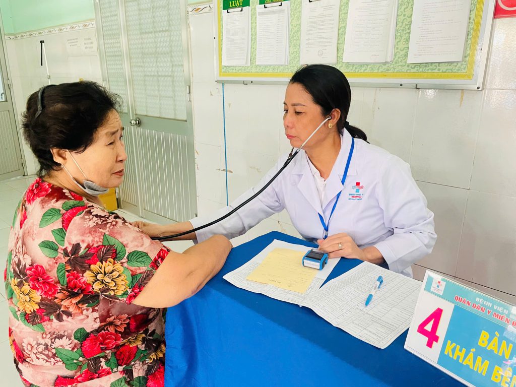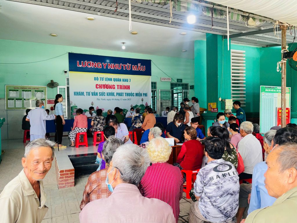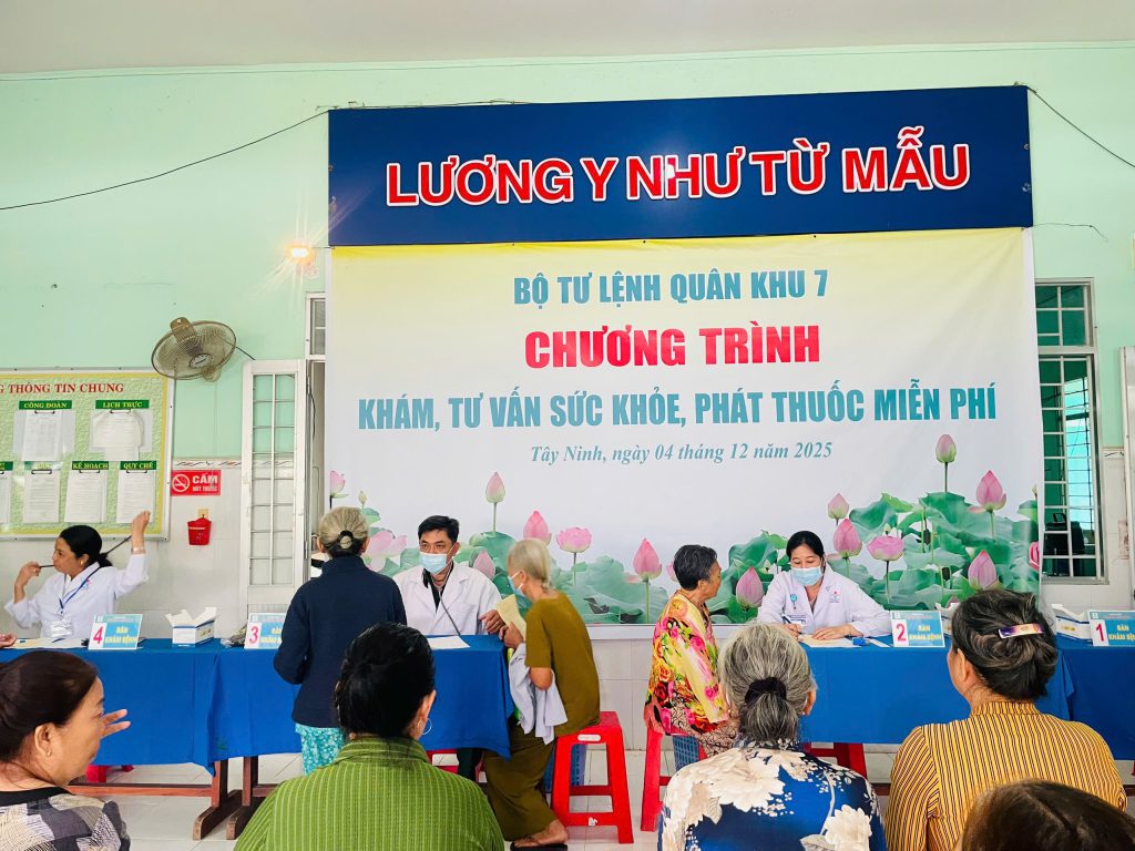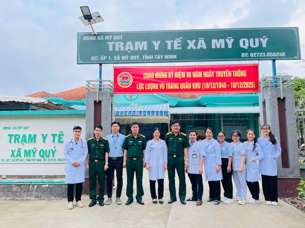 Sáng sớm ngày 04/12/2025, Đoàn công tác của Bệnh viện Quân Dân Y Miền Đông bao gồm 15 y bác sĩ, dược sĩ, nhân viên y tế đã vượt hơn 100km đến với bà con xã Mỹ Quý, tỉnh Tây Ninh thực hiện công tác khám, tư vấn sức khỏe, phát thuốc, tặng quà miễn phí cho 100 gia đình chính sách và người dân có hoàn cảnh khó khăn trên địa bàn xã.