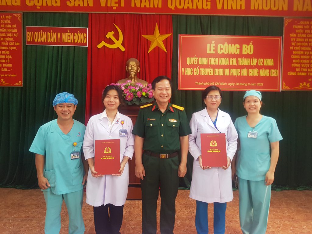 Trong không khí phấn khởi, Bệnh viện Quân dân y miền Đông tách khoa Y học cổ truyền – Phục hồi chức năng, thành lập 02 khoa Y học cổ truyền (A10) và khoa Phục hồi chức năng (C8). Điều này cho thấy Bệnh viện Quân dân y miền Đông ngày càng chú trọng đến việc phát triển chuyên môn để nâng cao hơn nữa chất lượng khám chữa bệnh.